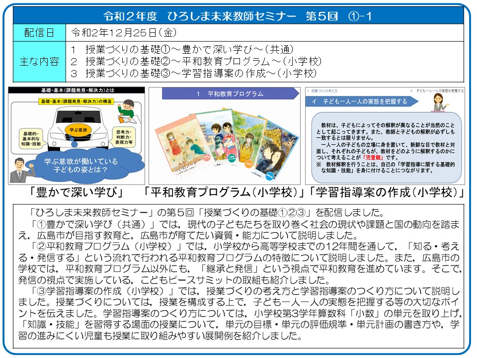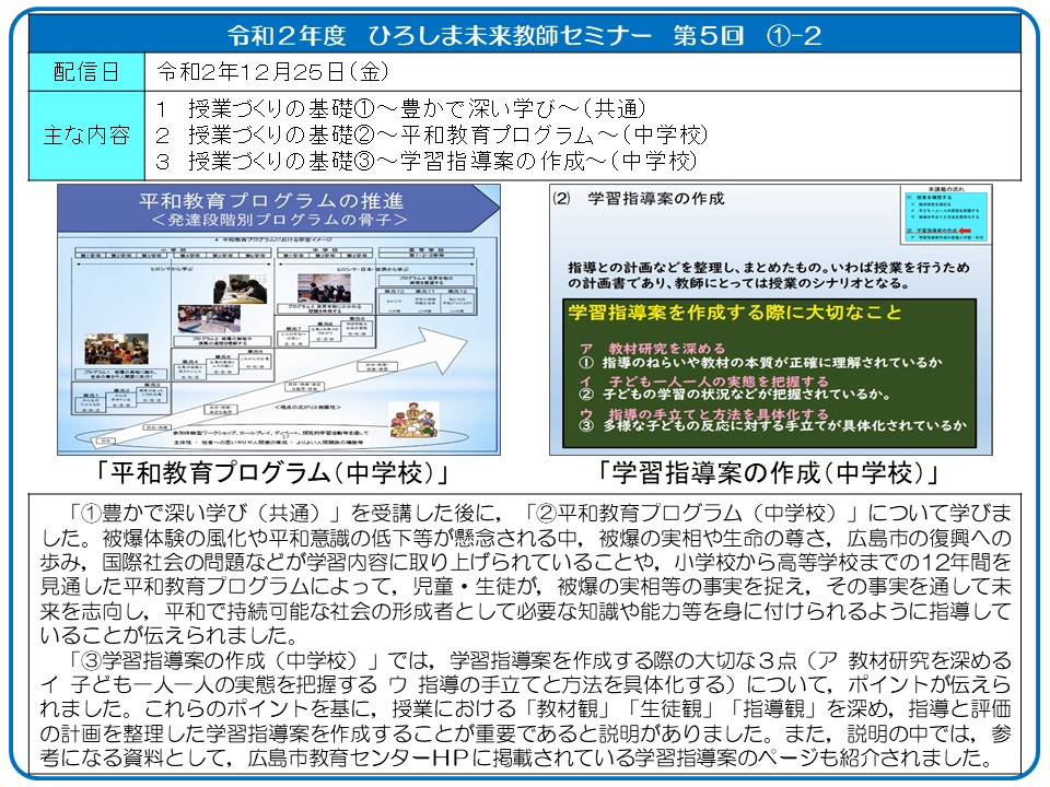 今年度ひろしま未来教師セミナーの内容(報告)